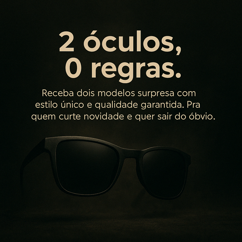 O kit 2 ÓCULOS SURPRESA entrega dois modelos selecionados aleatoriamente do nosso estoque — cada um com design exclusivo, alta qualidade e aquele toque ousado que só a Sevet tem. É a escolha perfeita para quem ama sair do óbvio, curte experimentar novos visuais e quer sempre uma novidade no look.
