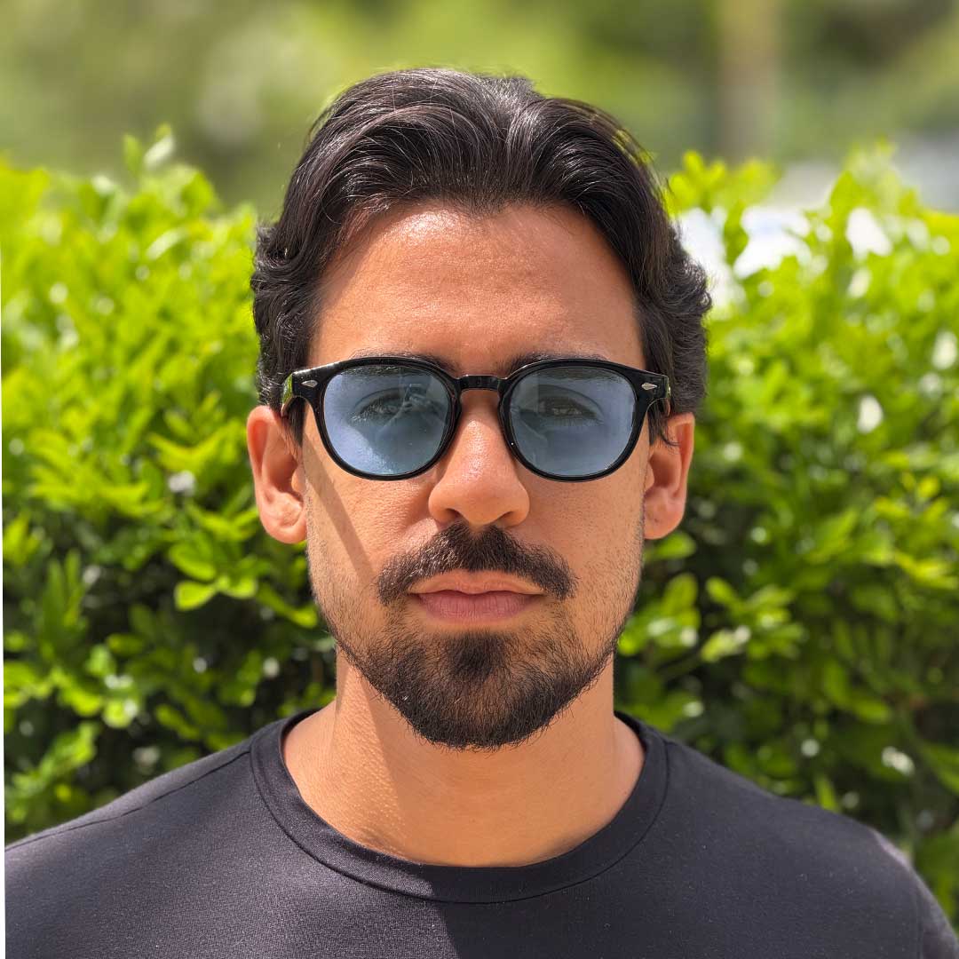 Copacabana é o equilíbrio perfeito entre clássico e contemporâneo. Esse modelo traz uma frente preta sólida com lente azul que reflete sofisticação urbana e leveza visual. É o óculos de quem transita entre o trabalho, a praia e o jantar à noite sem trocar de estilo. Atemporal, elegante e sempre atual — como Copacabana.